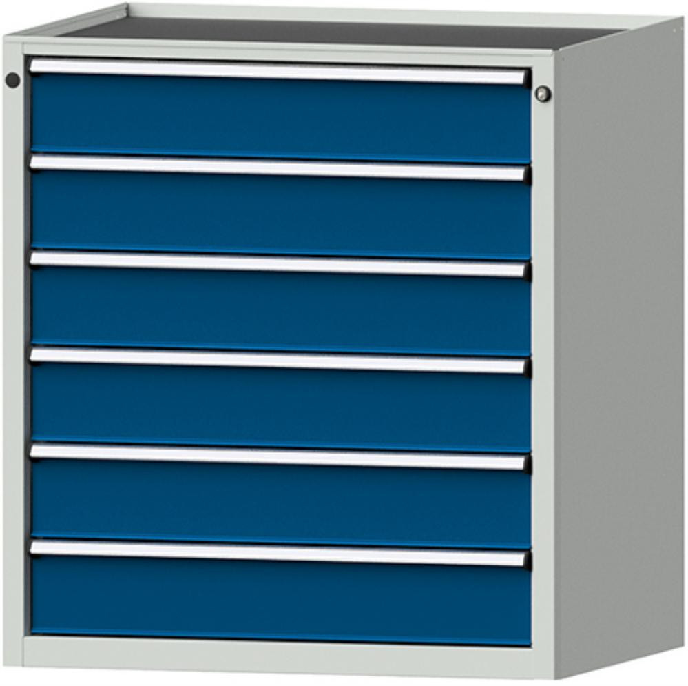 • Oberfläche: Gehäuse RAL 7035 lichtgrau/Schubladenfronten RAL 5010 enzianblau