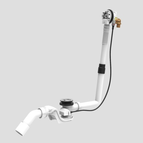 mit Zulauffunktion und universellen Wasseranschluss R 1/2 AG, Bowdenzug 650 mm, mit strömungsoptimierten Geruchverschluss, geringe Bauhöhe (90 mm) und Ablaufbogen Ø 40/50 mm, ohne Bedieneinheit, mit Montageset, für Badewannen mit Drehexzenterbetätigung