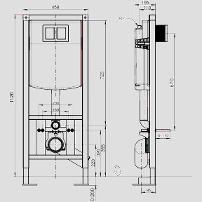 Betätigung von vorn, H/B/T: 1120 x 450 x 165 mm, nicht systemkonform mit 996, ohne Wandhalter, selbsttragende, pulverbeschichtete Stahlrahmenkonstruktion, zur Trockenverkleidung, zur freistehenden Montage, 2 Befestigungspunkte, komplett vormontiert, mit Schwerlastfüße und Befestigungsmaterial, Verstellbereich Füße von Rohfußboden bis OKFFB: 0-200 mm, Tiefenverstellung Vorderkante Element: 165 mm, schwitzwasserisolierter UP-Spülkasten (CC-121-S-FO-2V-2C) mit 2-Mengenspülung (7,5 bis 4,5 l/4 bis 2 l), Übertragung der Tastenfunktion über flexible Kabeltechnik zur INEO Ablaufgarnitur, Verbindung zur Betätigungsplatte über Dreh-Klick-Verbindung, mit Bauschutz für Spülrohr, Füllventil Armaturengruppe I, 2-teiliges Eckventil-Anschlussset R 1/2, Kombischelle 4-fach verstellbar, PE-WC-Anschlussbogen 90° DN (Ø 90)/DN 100 (Ø 110) mit Bauschutz, WC-Anschlussgarnitur DN 90 (Ø 90)/180 mm komplett, Bauschutzkasten für Revisionsöffnung kürzbar, flexibler Schlauch zum Füllventil von Hand verschraubbar, 2 WC-Haltebolzen M 12 einstellbar 180/230 mm mit Bauschutz und Muttern, Montageanleitung, ohne Betätigungsplatte