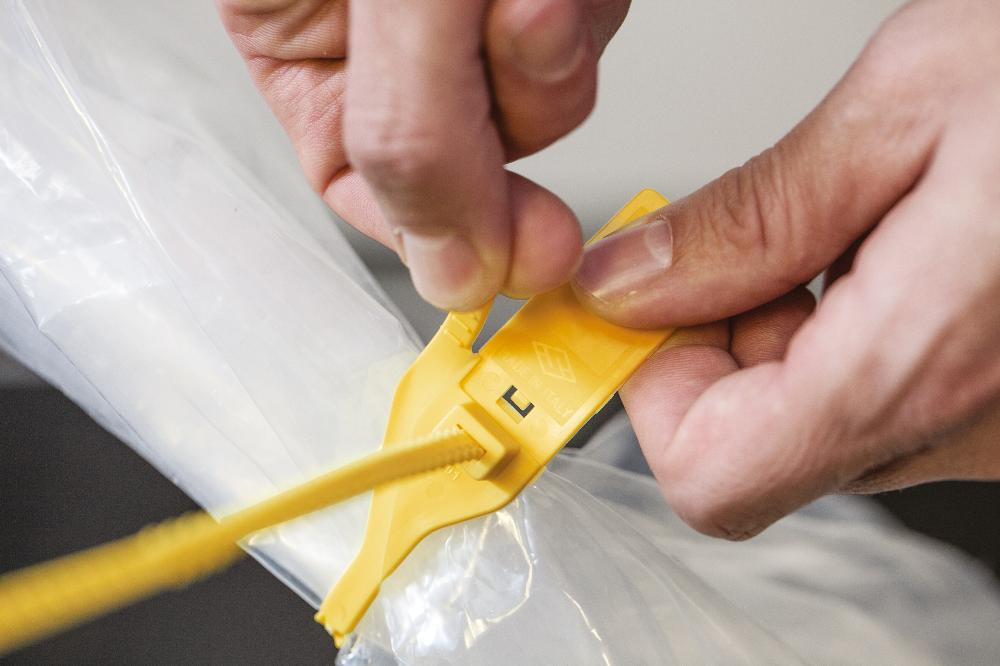 • Mit den Kabelbindern können Container und Transportkisten sicher verplombt werden