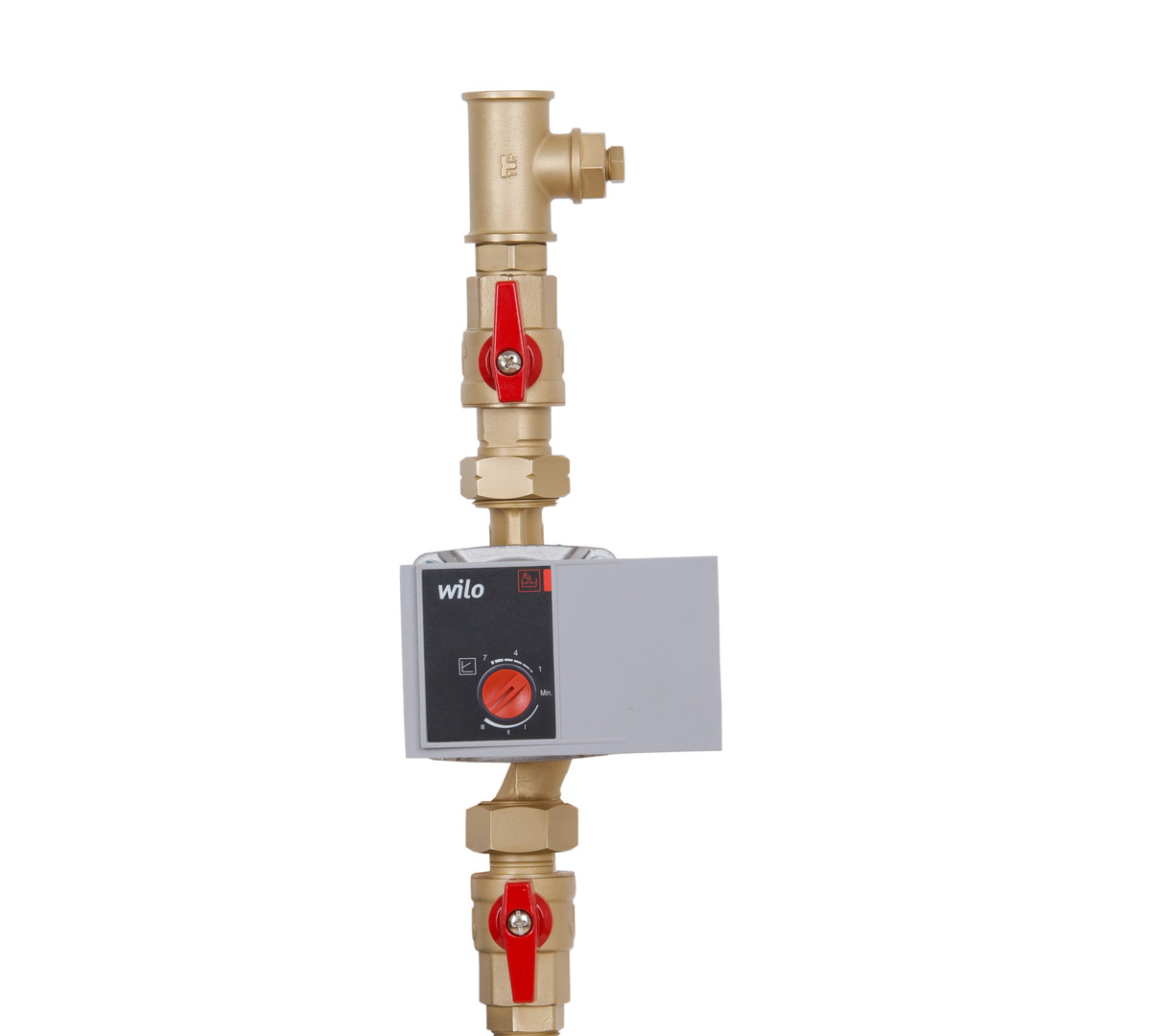 mit Zirkulationspumpe, Absperrkugelhähnen, Schwerkraftbremse und Tauchhülse mit Temperaturfühler Pt 1000