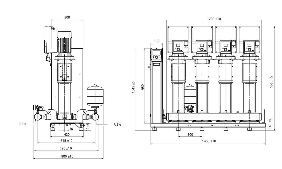 Wilo Mehrpumpenanlage SiBoost2.0 Smart 4HELIX VE606, R2½ (PN 10), R2½ (PN 16), 2.2kW, 2.47kW