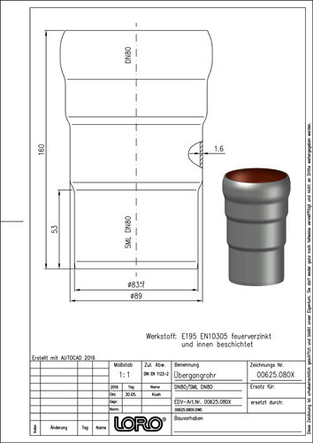| Nenndurchmesser Anschluss 1 | DN 80 |