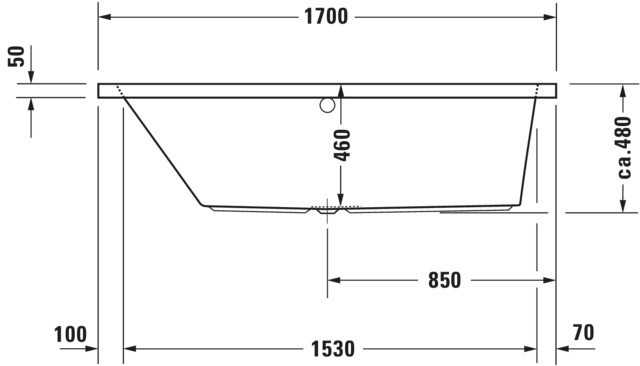 Duravit Rechteck-Badewanne Vero 170 x 70 x 46 cm, Einbauversion, Rückenschräge links, weiß W206928