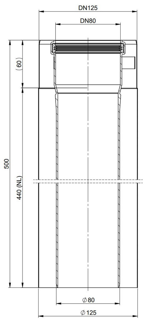 ATEC Rohrelement PolyClassic +Iron/White 440 mm, DN 80/125, kürzbar, PP, Edelstahl weiß