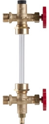 zur Kontrolle des Wasserstandes im Druckbehälter nach DIN 4810, PN 10, 100 °C, Medien Wasser/Öl, Gehäuse 2.0401 (CuZn39Pb3), Dichtung NBR, Handrad Metall, rot Flüssigkeitsstandrohr