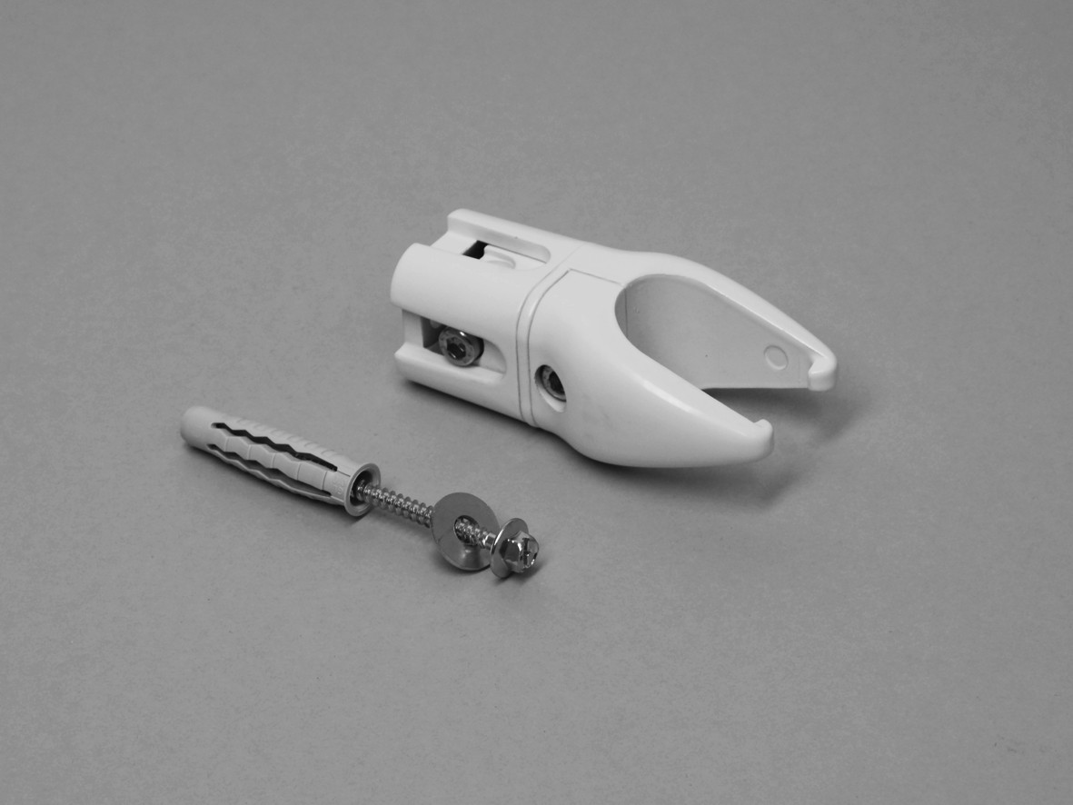 für Mido und Serie BMS, für seitliche Befestigung als Raumteiler, mit Klemmteil für das Sammelrohr 30 x 40 mm Halbovalrohr, Schraube und Dübel, mindestens 2 Konsolen je Heizkörper erforderlich, nicht sichtbare Innenmontage der Wand-Befestigungsschraube, quadratische Wandauflagefläche 35 x 35 mm, lichter Wandabstand 50-58, 120-128 und 203-211 mm