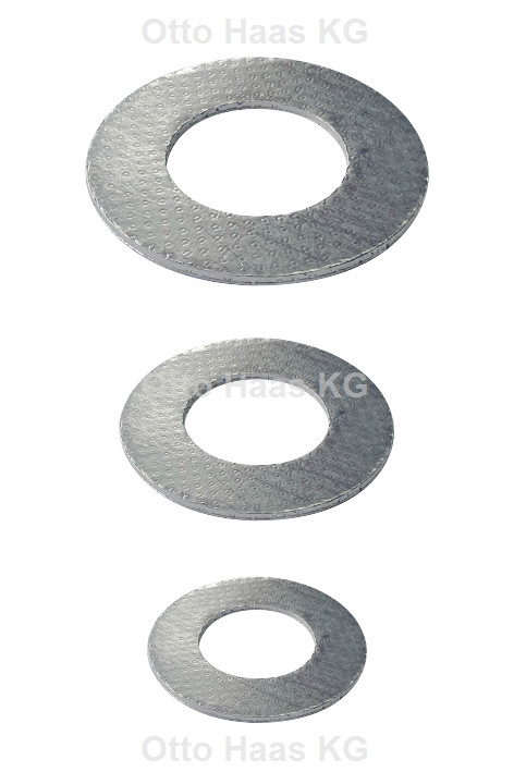 nach DIN EN 1514-1, aus Reingraphit, 2 mm stark, mit Edelstahl-Spießblecheinlage, für Abdichtung bei hohen Temperaturen sowie aggressiven Medien im Rohrleitungs-/Maschinen- und Apparatebau/in Chemieanlagen/Kraftwerken/in Energieversorgungsbereich und in Dampfleistungen sowie Solaranlagen, glykolbeständig, DVGW geprüft und zugelassen nach DIN 3535-6/W 270 und BAM und Germanischer Lloyd, temperaturbeständig bis 450 °C