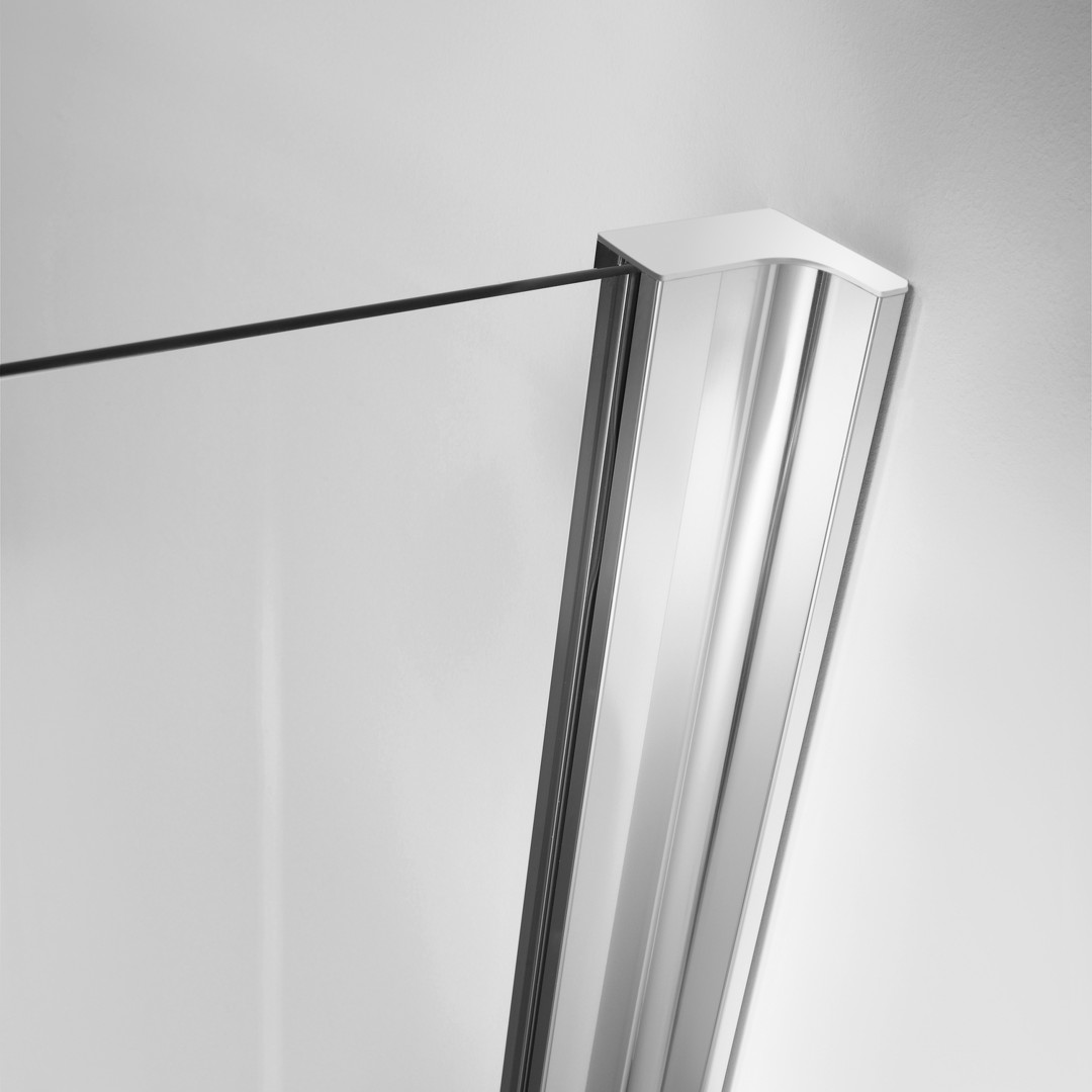 Glas 8 mm ESG, Standardhöhe 200 cm plus 3 cm Rundrohrbügel Ø 1,4 cm, Tür öffnet nach Innen und Außen, bodeneben, ohne Schwallschiene, PALM.fix, PALM.lift, PALM.free, PALM.pro, PALM.isi-clean, optional: PALM.nano, PALM.care, durchgehendes Wandbefestigungsprofil mit Verstellbereich
