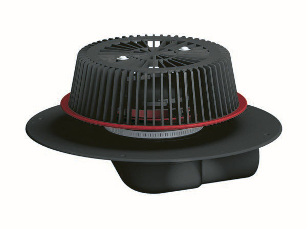 nach DIN EN 1253, flacher Notablauf zum Einbau in Wärmedämmungen min. 120 mm, Laubfangkorb verschraubt, Anstauelement höhenverstellbar 28-58 mm, Polypropylen, UV-stabilisiert, 86 D DallBit mit Gehäuse mit werkseitig aufgeschweißter Bitumenschweißbahn-Manschette, Ø 500 mm, 5 mm stark, Edelstahlflansch zur zusätzlichen Sicherheit, 86 D PVC komplett aus PVC, mit extra breitem Flansch zum Anschluss von PVC-Dachbahnen, 86 D FPO-PP mit extra breitem Flansch zum Anschluss von FPO-Dachbahnen auf Werkstoffbasis Polypropylen, 86 D FPO-PE mit extra breitem Flansch zum Anschluss von FPO-Dachbahnen auf Werkstoffbasis Polyethylen
