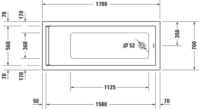 Duravit Rechteck-Badewanne Starck 170 x 70 x 46 cm, Einbauversion, 1 Rückenschräge, weiß W206973