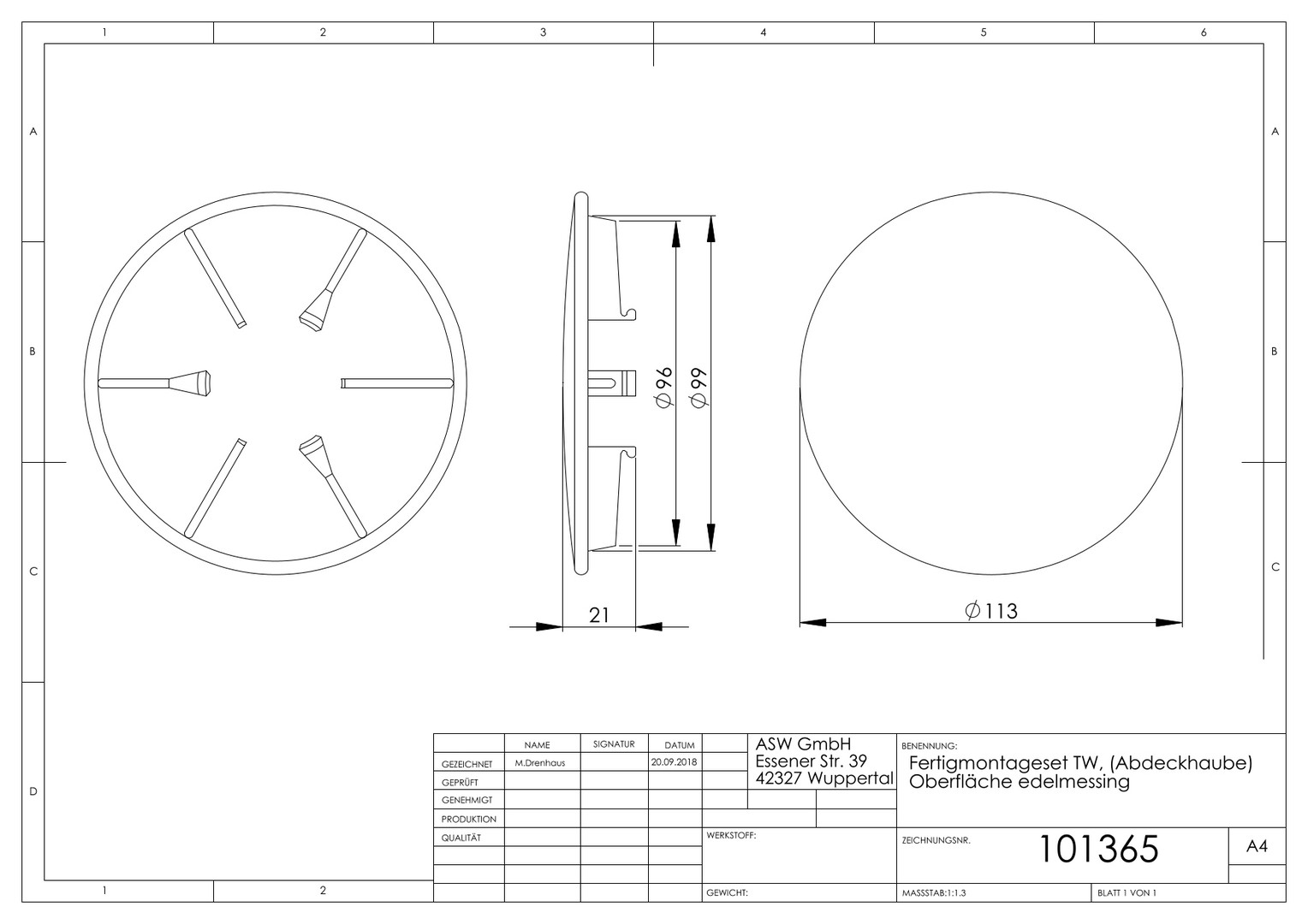 ASW Fertigmontageset TW (Abdeckhaube), edelmessing