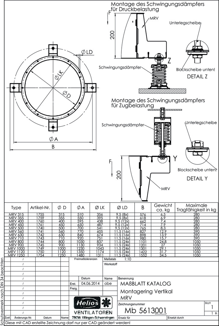 Helios Montagering MRV 560, zur vertikalen Befestigung