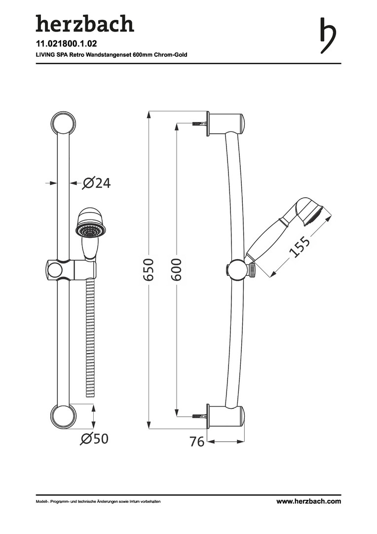Herzbach Brausegarnitur Living Spa Retro 600mm, mit Handbrause 1-strahlig, chrom-gold