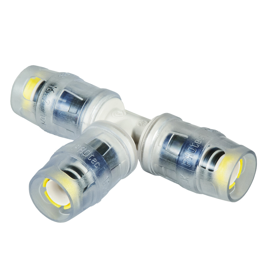 Multitubo Steck-T-Stück PPSU, 16 x 16 x 16 mm, mit transparenter Kunststoffhülse