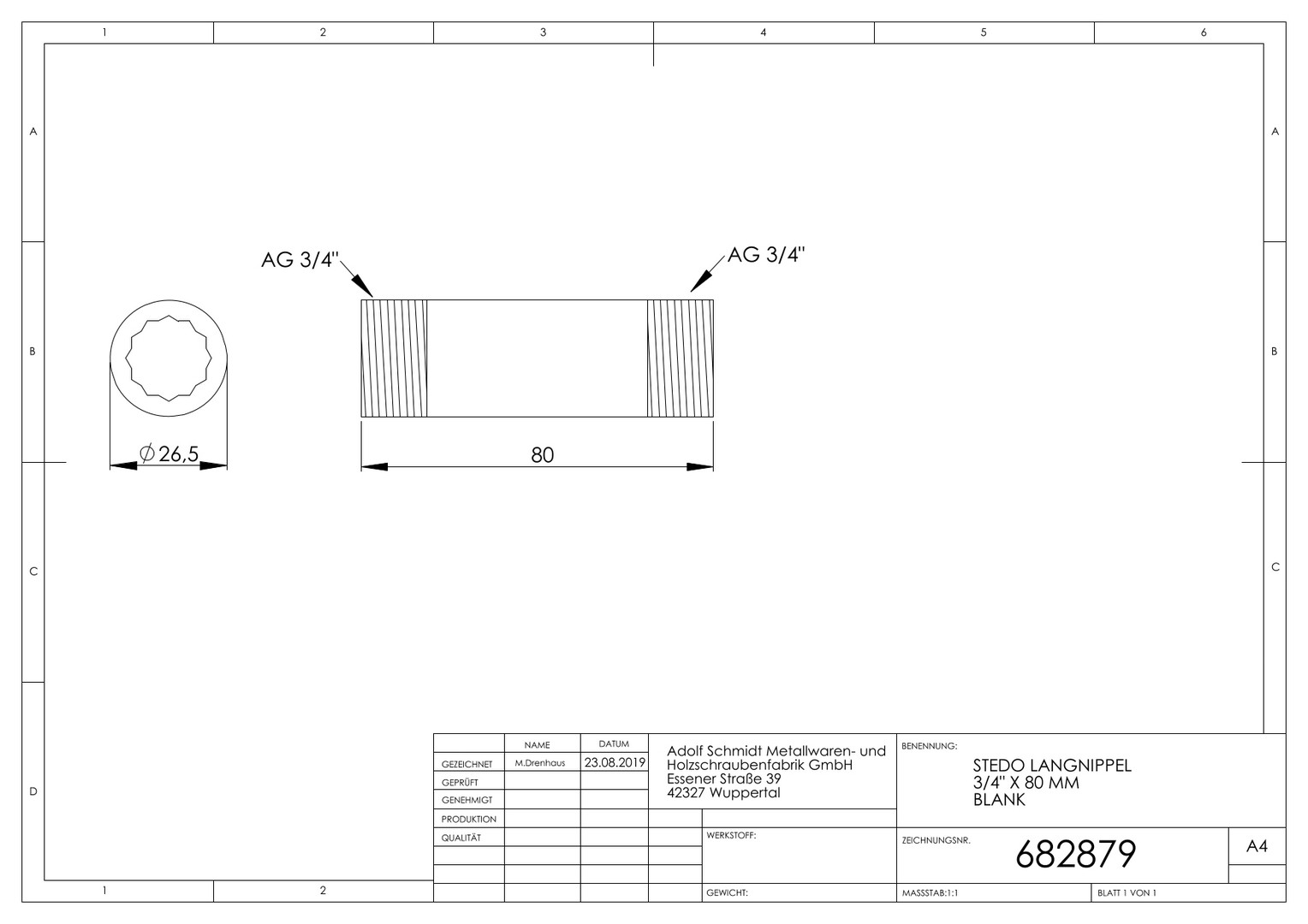 | Rohraußendurchmesser Anschluss 1 | 26,5 mm |
