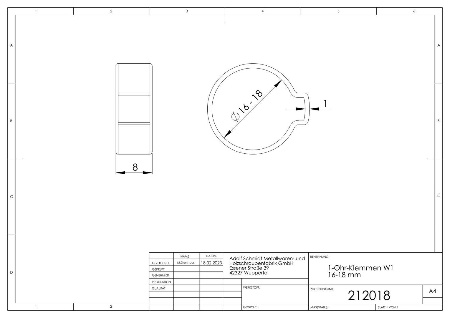 ASW 1-Ohr-Klemme W1 16-18 mm, verzinkt
