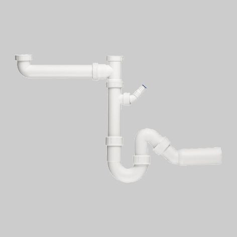 FORMAT Tec Doppelspülensiphon 1 1/2" x 40 mm, weiß, mit Ablaufbogen 45 Grad und Geräteanschluss 264707
