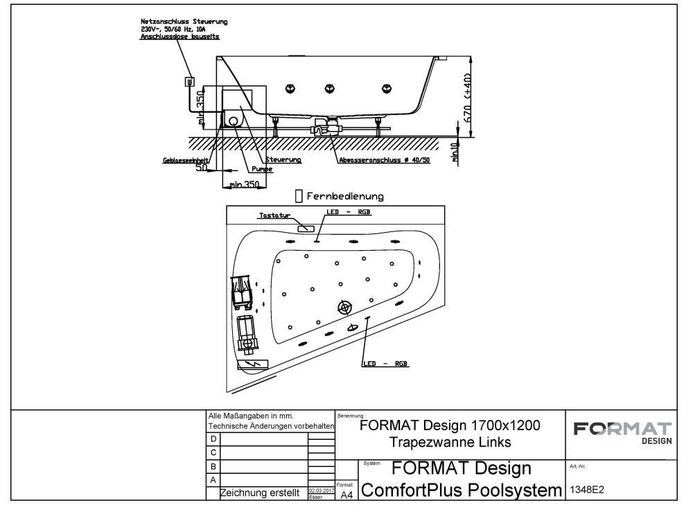 FORMAT Design Trapez-Poolwanne 170/120 x 65 cm, ComfortPlus, Rückendüsen links, weiß, links