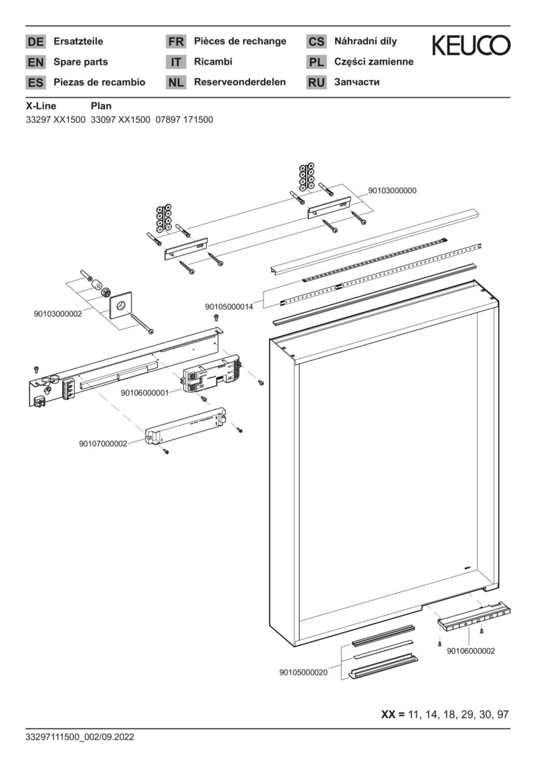 KEUCO Lichtspiegel X-Line 460 x 850 x 105 mm, Inox, Lichtfarbe einstellbar W361177