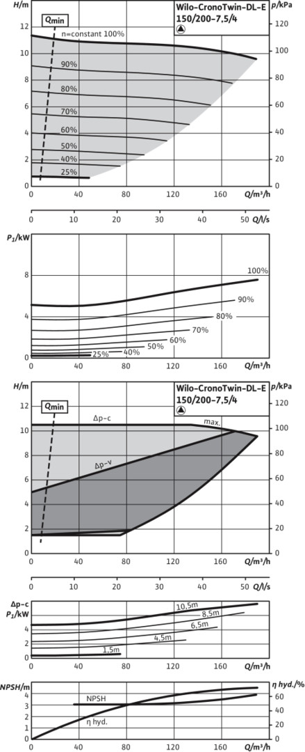 Wilo Trockenläufer-Energiesparpumpe CronoTwin DL-E 150/200-7,5/4-R1, 7,5 kW, ohne Differenzdruckgeber