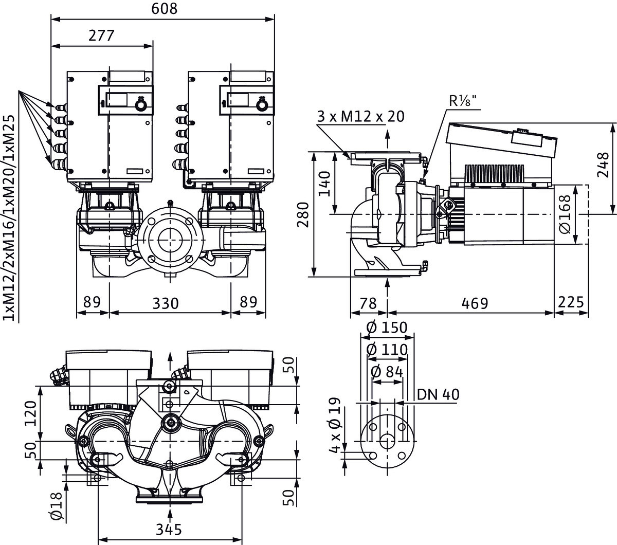 Wilo Trockenläufer-Hocheffizienz-Doppelpumpe Stratos GIGA-D 40/1-25/1,6-R1, ohne Differenzdruckgeber W829227