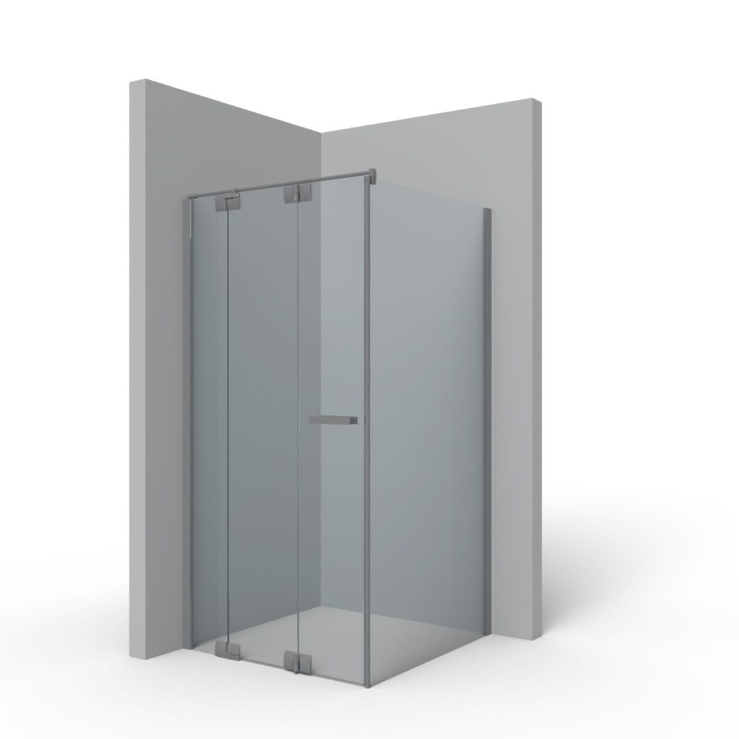 Palme Falttür Aprejo Vario mit Seitenteil 118,5 x 200 cm, links, ESG transparent, alusilber, 2-teilig, an Fixteil