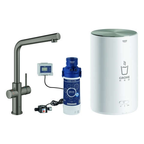 GROHE Spültisch-Einhebelmischer Red Duo L-Auslauf, mit Boiler Größe M, hard graphite gebürstet