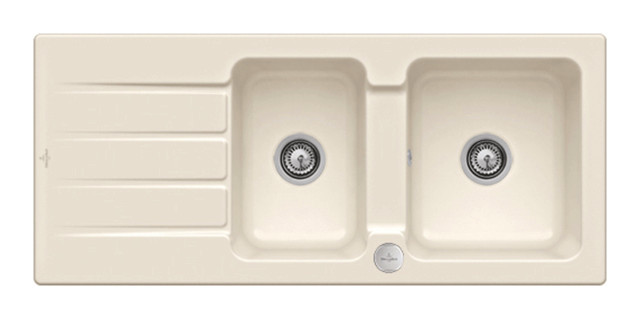 V&B Spüle Architectura 80 mit Ablaufgarnitur, Excenterbetätigung, crema CeramicPlus