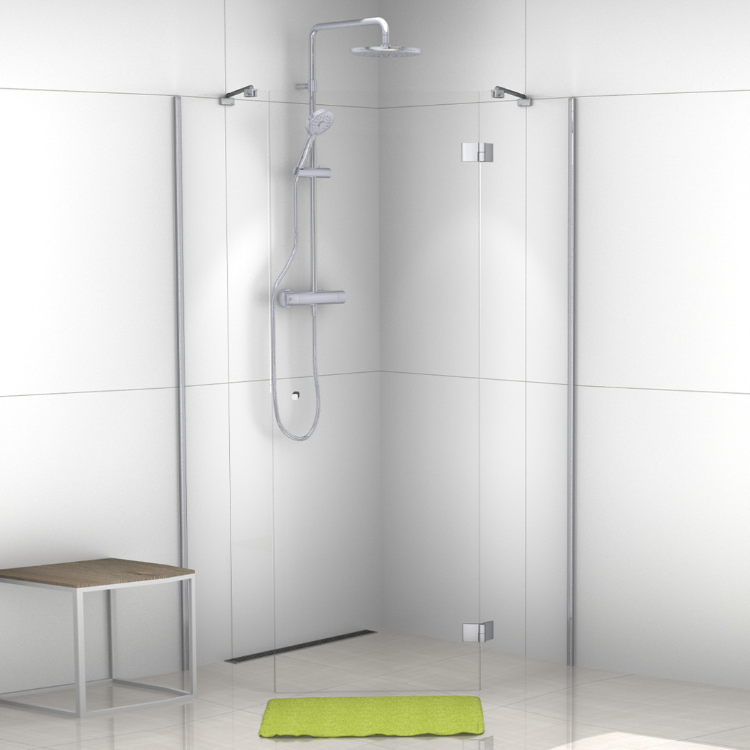 Palme Fünfeck-Abtrennung Viteo Pro 75 x 90 x 200 cm, links, ESG transparent, alusilber, 3-teilig W244665