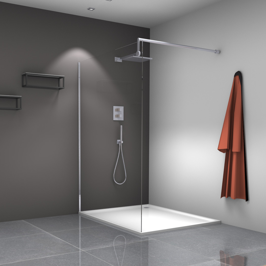Palme Trennwand Walk-In Tube 90 x 200 cm, links, ESG transparent, cenit-chrom, 10mm, in Fliese, Duschtasse