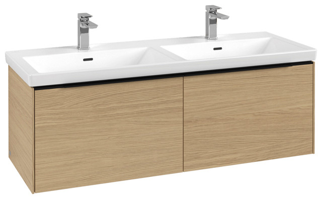 V&B Waschtisch-Unterschrank Subway 3.0 127,2x42,9x47,8cm, ohne LED/Griff Aluminium glänzend, kansas oak W437294