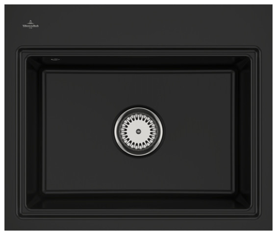 V&B Flächenbündige Spüle Subway Style 60 S Flat rechts, mit Ablaufgarnitur, Handbetätigung, ebony