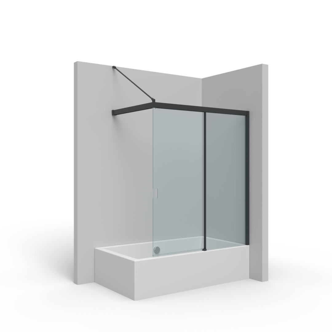 Palme Wannenschiebetür Piana X-Free 2-teilig, Querholm, 158,5 x 160 cm, rechts, AK ESG nano, schwarz