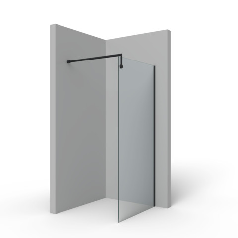 Palme Trennwand Walk-In Tube 90 x 200 cm, rechts, ESG transparent, schwarz, 10mm, auf Fliese, Duschtasse