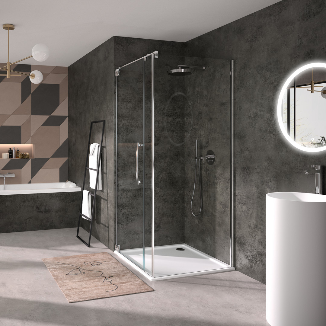 Palme Pendeltür Aprejo Pro mit Seitenteil 100 x 200 cm, links, AK ESG transparent, cenit-chrom, Fixteil in Verlängerung