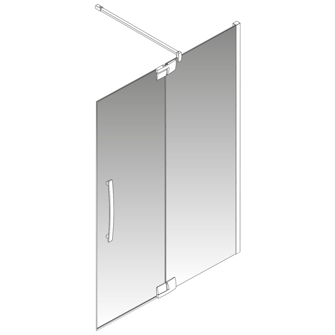 Glas 8 mm ESG, Standardhöhe 200 cm plus 3 cm Verstrebungsbügel, Pendeltür öffnet 135° nach Innen und Außen, Bügellänge 120 cm (ablängbar), Montage auf Duschwanne, PALM.lift, PALM.pro, PALM.free, PALM.isi-clean, optional: PALM.nano, PALM.care, PALM.magic, durchgehendes Wandbefestigungsprofil mit Verstellbereich