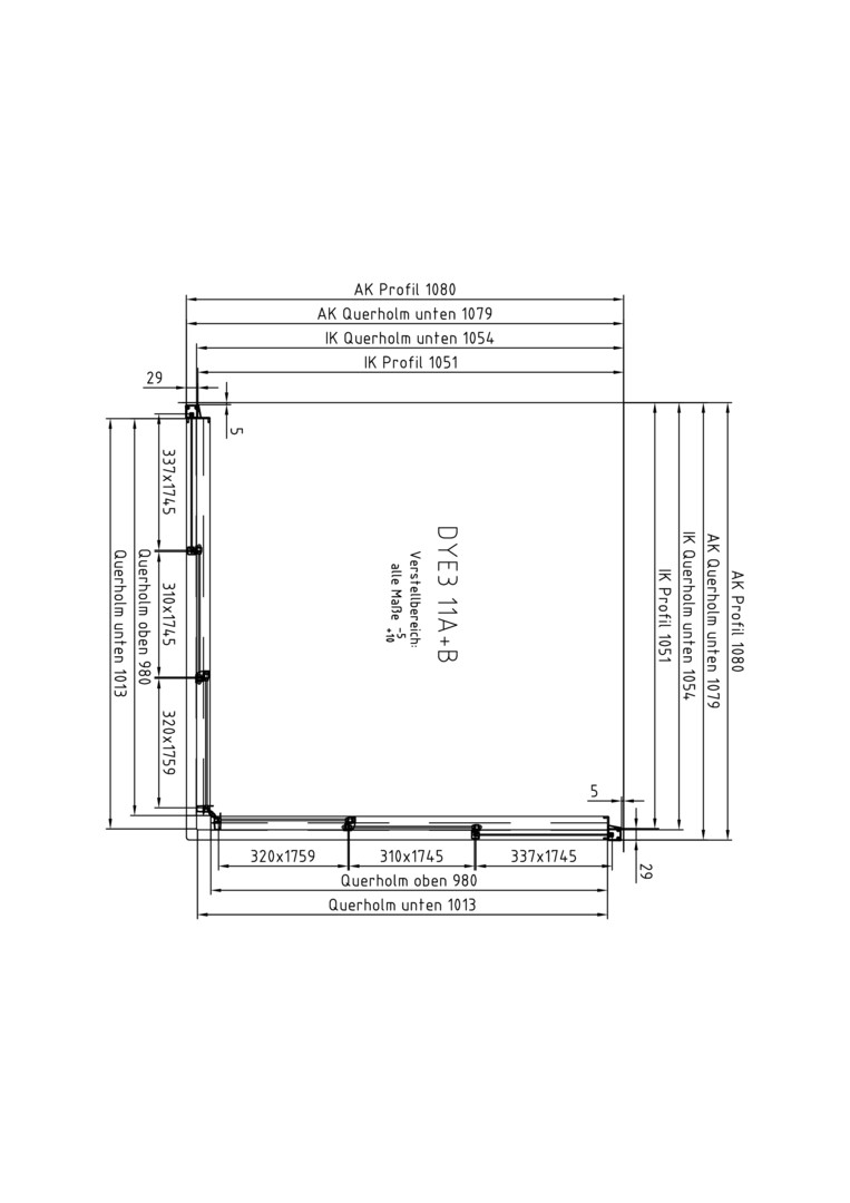 Palme Eckeinstieg Drive 1.0 108,5 x 180 cm, rechts, ESG transparent, schwarz, 3-teilig, Bodenprofil