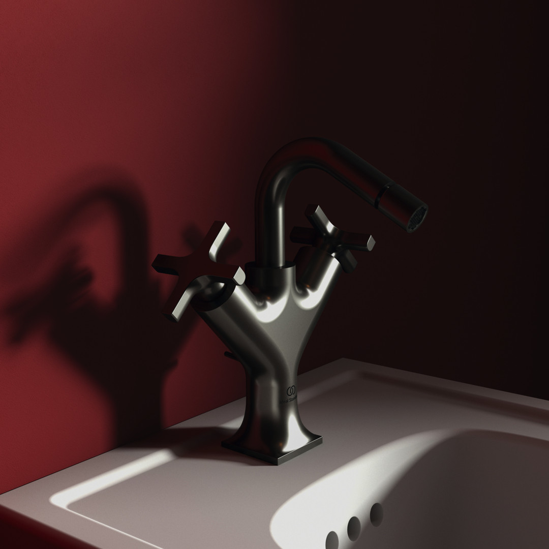 Ideal-Standard Bidet-Einhebelmischer Joy Neo mit Ablaufgarnitur, Kreuzgriffe, Ausladung 115mm, magnetic grey W318427