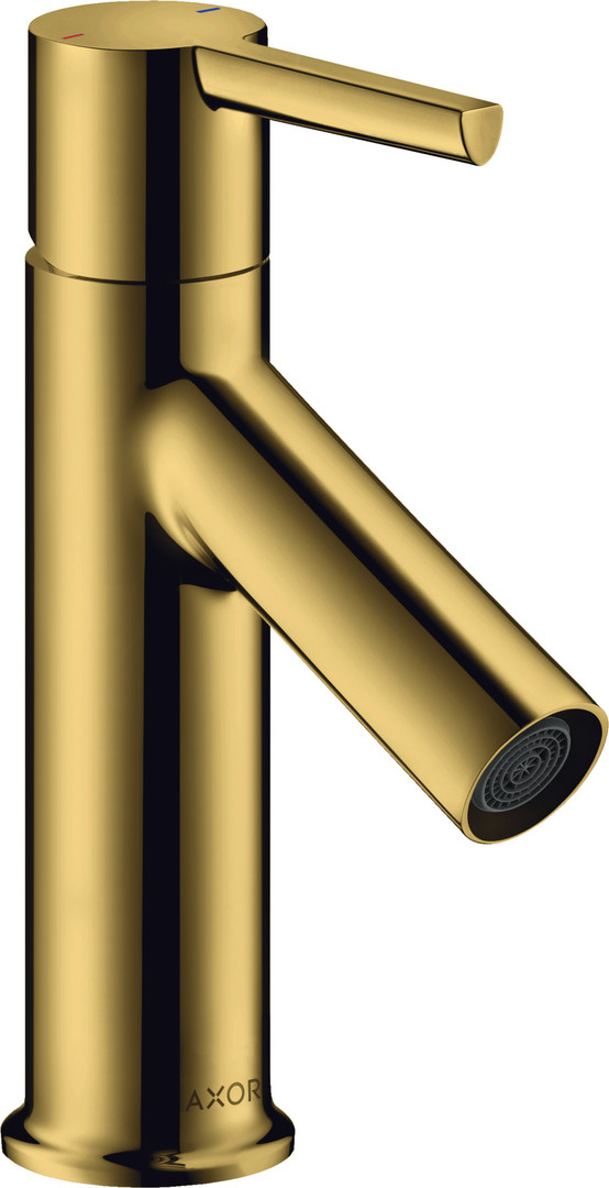 hansgrohe Waschtisch-Einhebelmischer 80 Axor Starck Ausladung 86mm, mit Hebelgriff, mit Zugstangen-Ablaufgarnitur, für Handwaschbecken, polished gold optic
