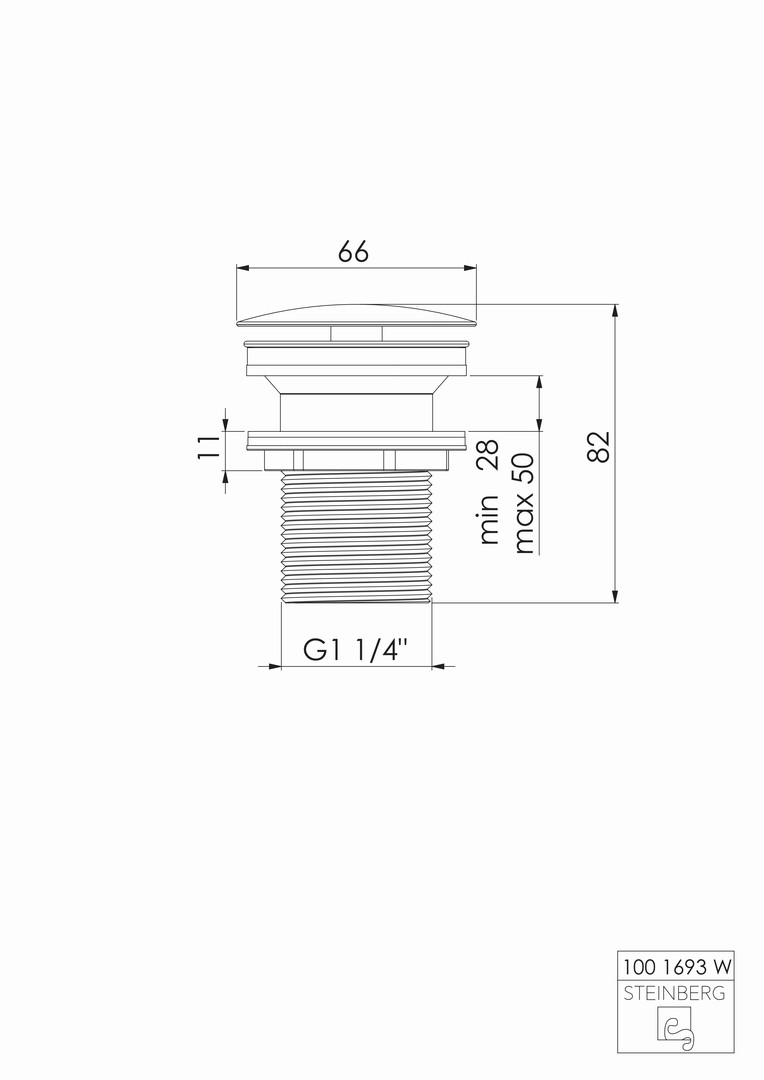 Steinberg Schaftventil Serie 100 1 1/4", für Waschtische ohne Überlauf, chrome 266037