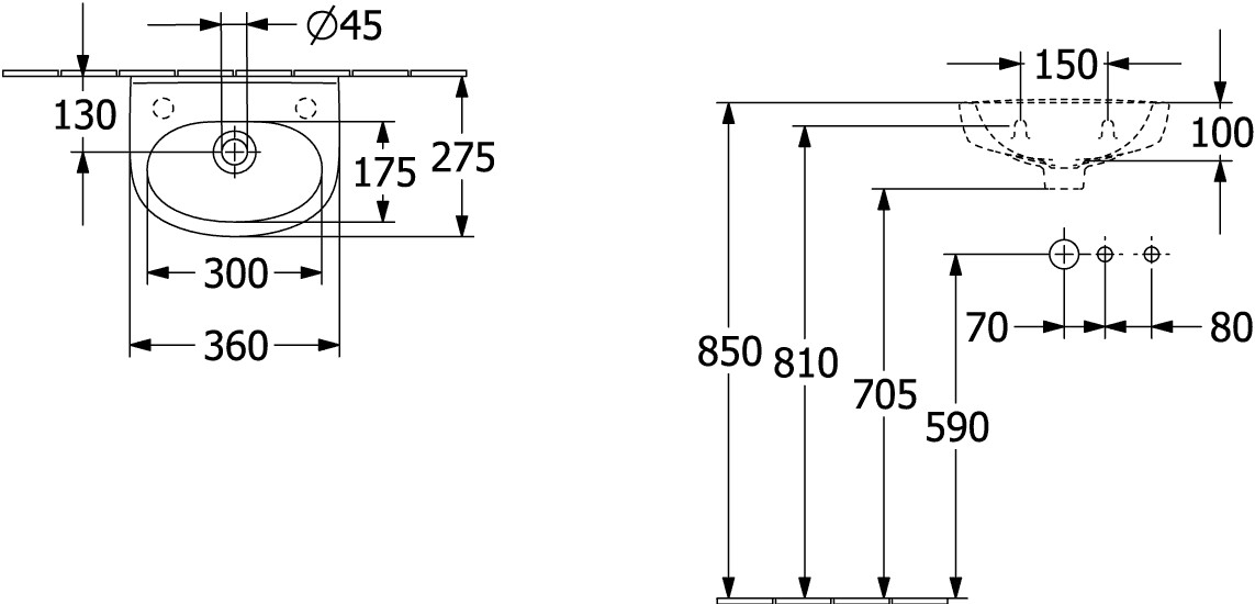 | Dimension | seitliches Hahnloch, mit Überlauf |