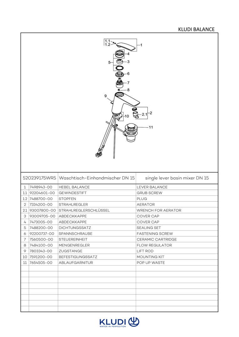 KLUDI Balance Waschtisch-Einhebelmischer mit Ablaufgarnitur, chrom 265612