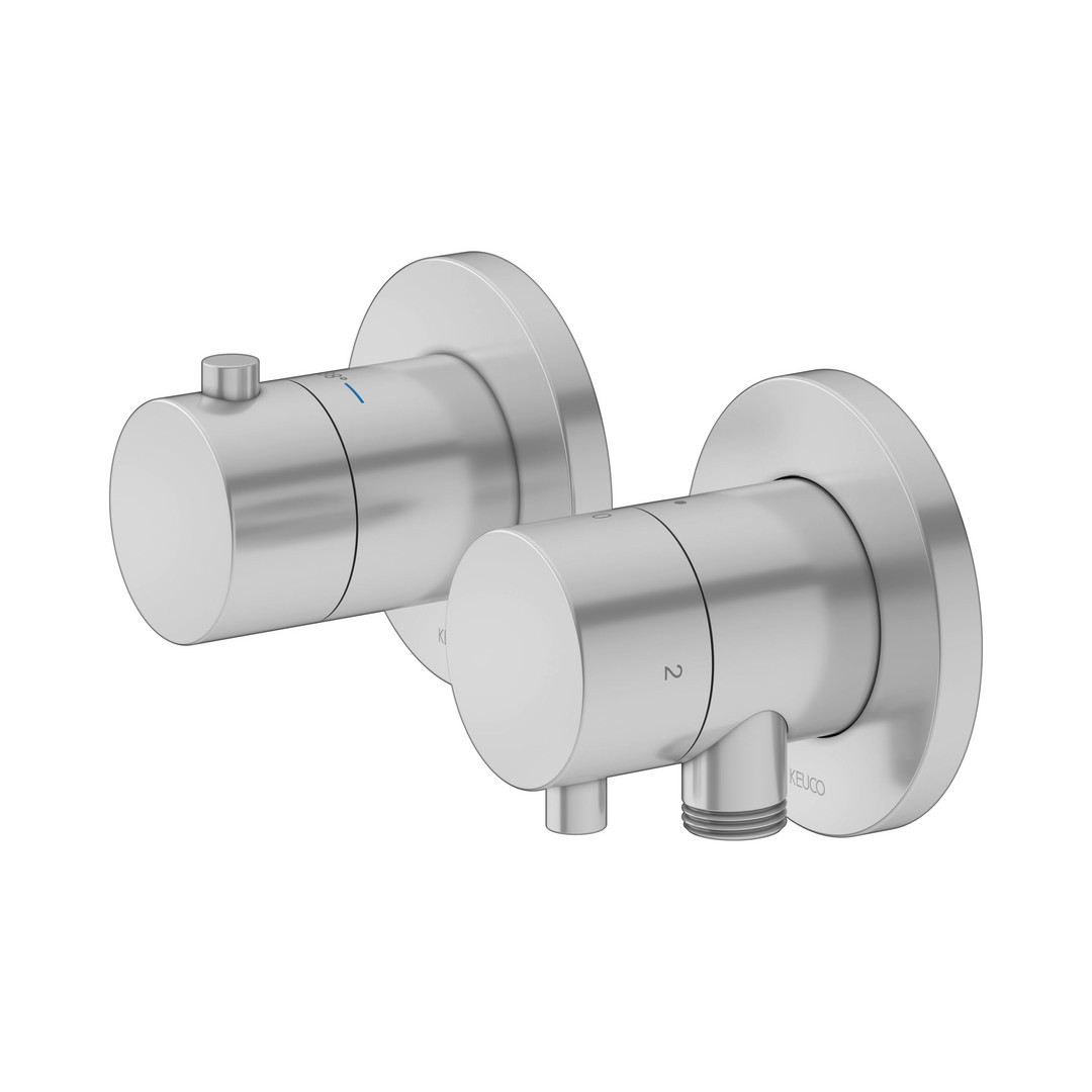 KEUCO Fertigmontageset Plan blue UP-Thermostatarmatur, mit Schlauchanschluss, Brausehalter, für 2 Verbraucher, aluminium-finish