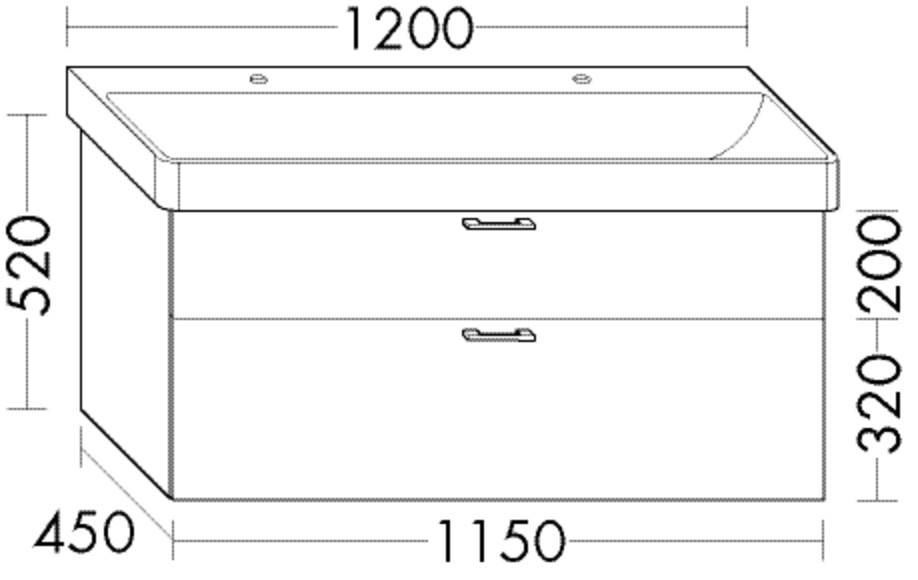 Waschtischunterschrank zu Geberit Smyle Square 500.229, 1 Schublade oben, mit Siphonausschnitt und Inneneinteilung, 1 Auszug unten
