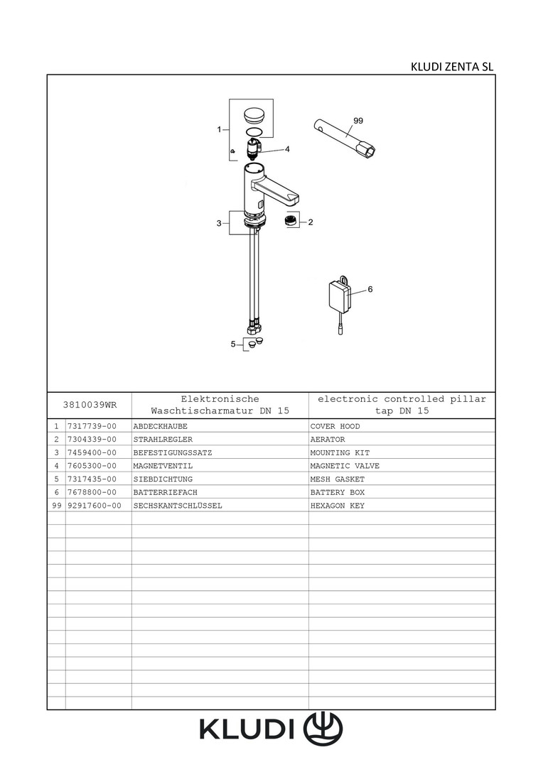 KLUDI ZENTA SL E IR-Waschtischarmatur mit Mischwelle, Temperaturwählgriff, Batteriebetrieb, chrom W324806