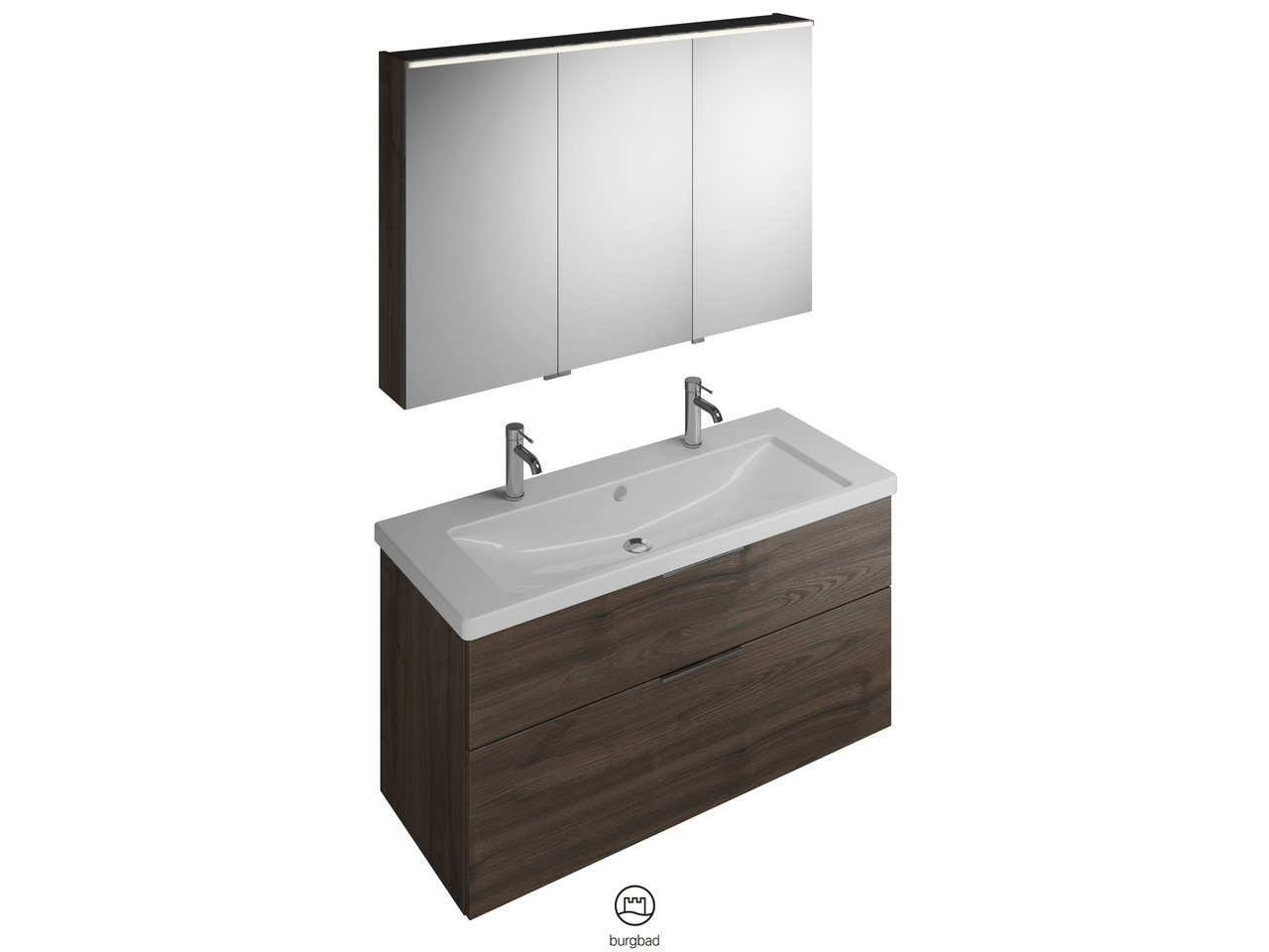Burgbad Waschtisch-Kombination Eqio 123 x 64,5 x 49 cm, Lack matt, mit Spiegelschrank