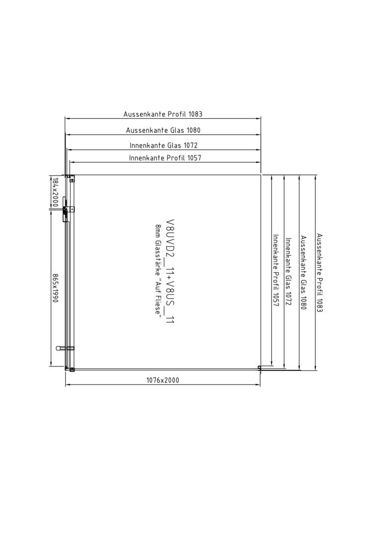 | Einbaubreite Tür für die Montage mit Seitenwand | 1100 mm |