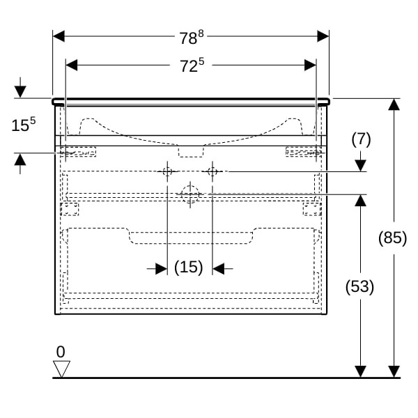 Geberit Möbel-Waschtisch-Set Renova Plan 80x62,2x48cm, Korpus/Front weiß hochglänzend, Waschtisch weiß W50341