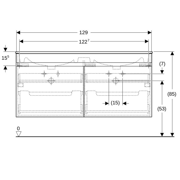 Geberit Doppelwaschtisch-Set Renova Plan 130x62,2x48cm, Korpus/Front weiß hochglänzend, Waschtisch weiß W50357